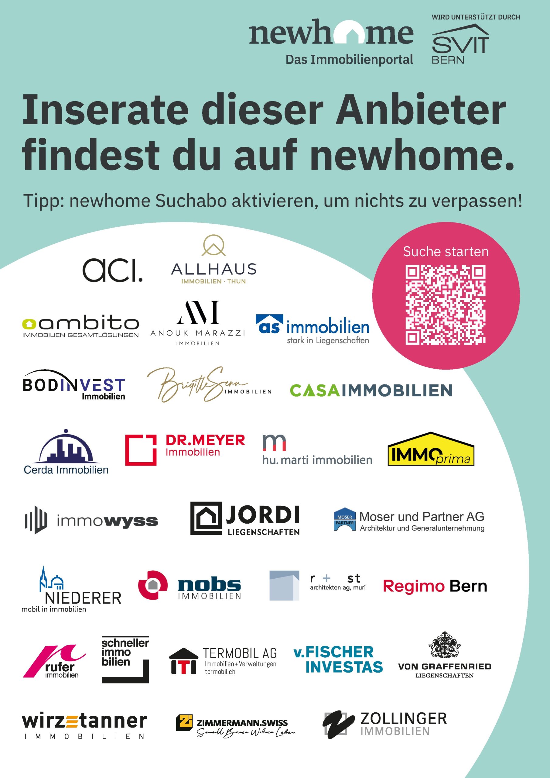 Wie sehr viele Immobilienfirmen im Kanton Bern veröffentliche auch ich die Kauf- und Mietobjekte bevorzugt auf newhome.ch – dort oft zuerst oder sogar exklusiv. 🔍 Tipp: Nichts verpassen und ein Suchabo auf newhome.ch aktivieren!🔎 Besuchen Sie newhome.ch und richten Sie sich ein kostenloses Suchabo ein. So werden Sie sofort per Mail benachrichtigt, sobald neue Objekte aufgeschaltet sind – [...]
